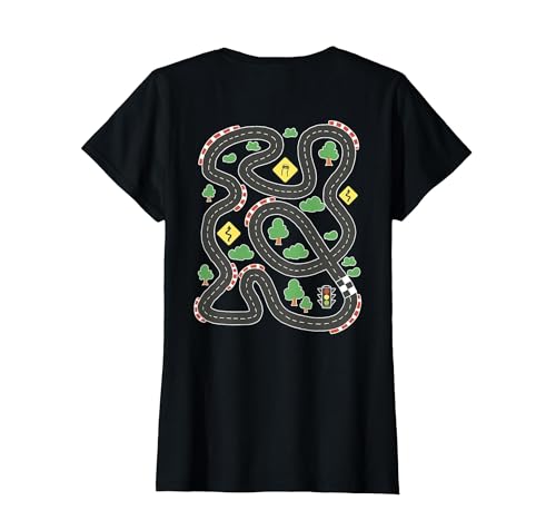 Playmat Train & Car Race Track Design On Back Side T-Shirt, Women, Black, X-Small
