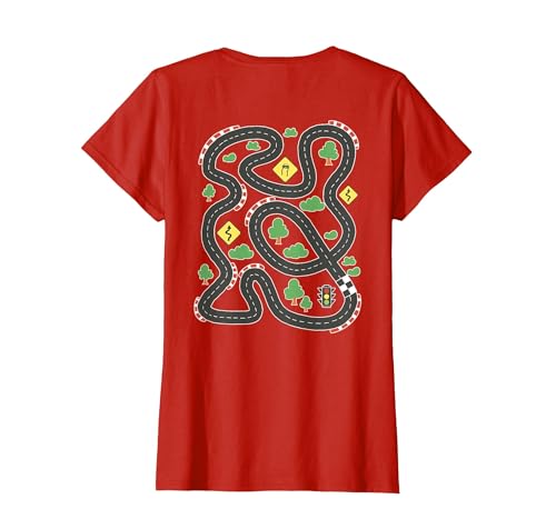 Playmat Train & Car Race Track Design On Back Side T-Shirt, Women, Red, X-Small