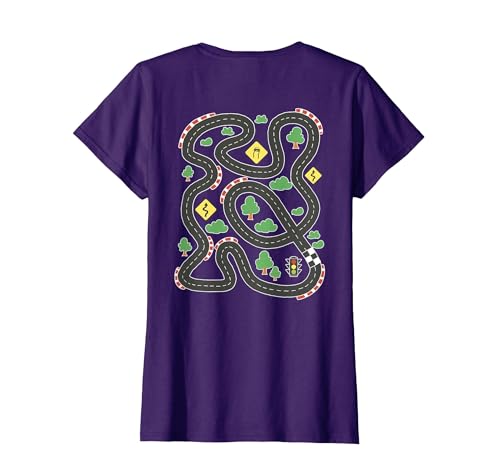 Playmat Train & Car Race Track Design On Back Side T-Shirt, Women, Purple, X-Small