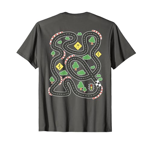 Playmat Train & Car Race Track Design On Back Side T-Shirt, Men, Asphalt Grey, X-Large