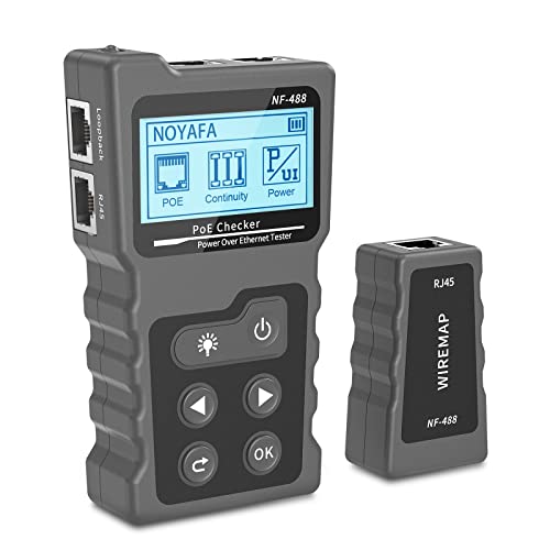 VXSCAN Network Cable Tester, NF-488 POE Ethernet Cable Tester for Power Over Ethernet, Advanced Cable Tester for LAN CAT5 CAT6 Ethernet Cable Tracker, DC Power, Switch Loop-Back Test, Black