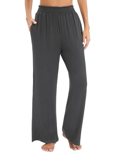 Famulily High Waisted Palazzo Pants for Women Loose Fit, Ladies Summer Casual Wide Leg Trousers with Pockets (L, Dark Grey)
