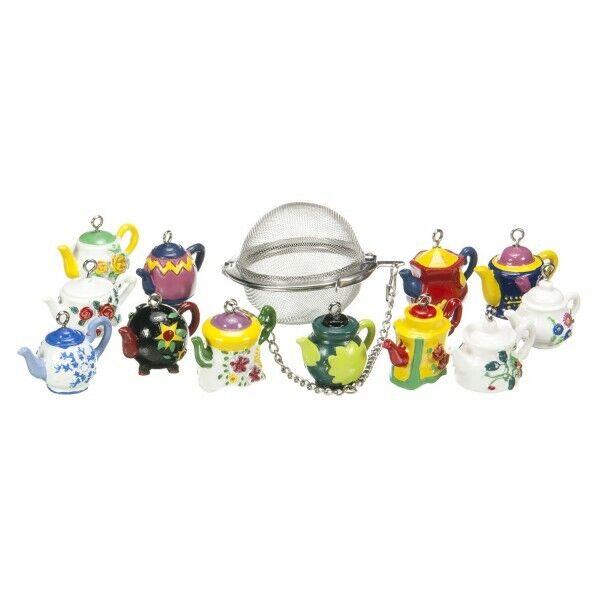 Loose Leaf Tea Infuser Strainer Steeper Metal + Hand Painted Teapot Charm UK