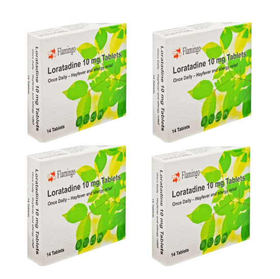 4 x Flamingo Hayfever & Allergy Loratadine 14's 10mg - Once Daily - Non Drowsy