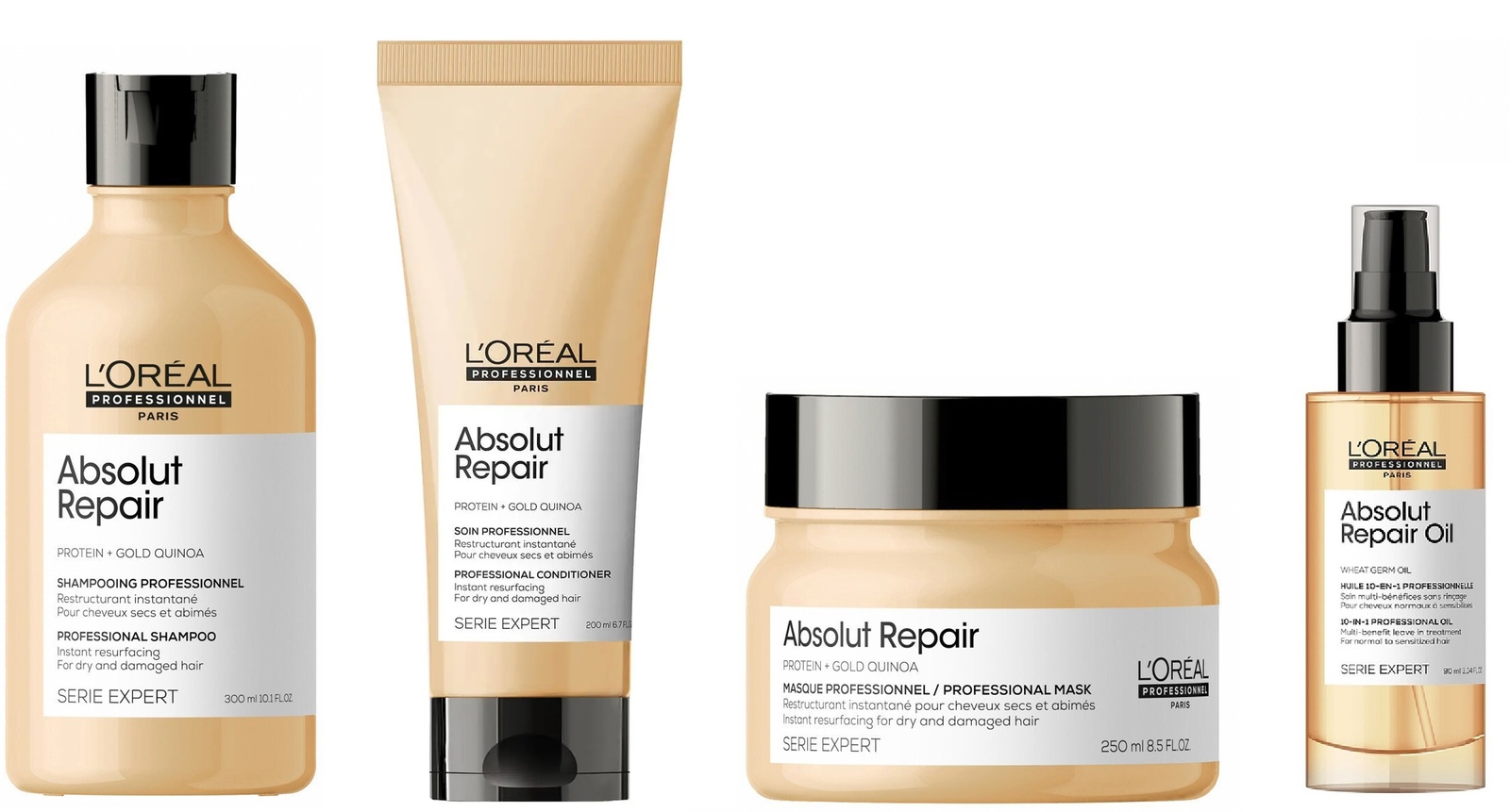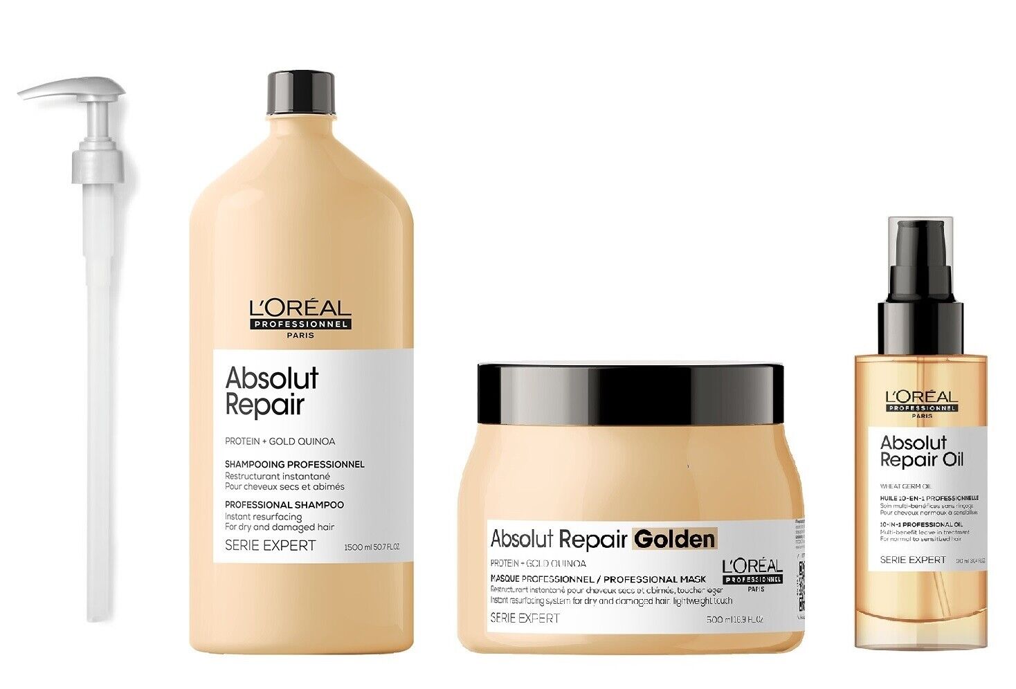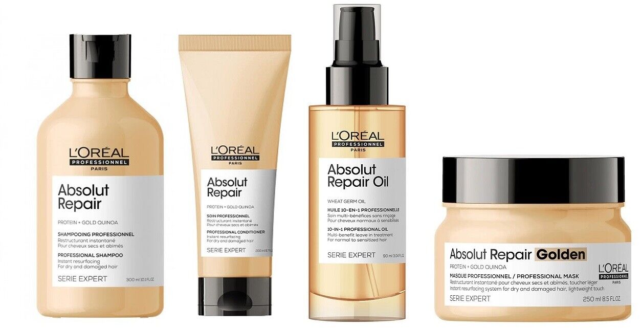 Loreal SE Abs Rep /S/Poo 300ml /Cond 200ml /Golden Mask 250ml /Repair Oil 90ml