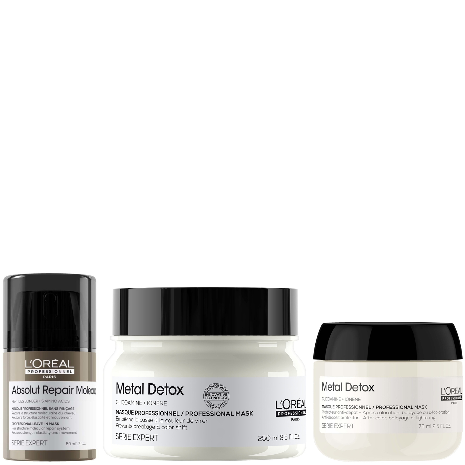 L'Oréal Professionnel Metal Detox Hair Mask & Absolut Repair Molecular Leave-In Cream, repair damage mask set 250ml & 50ml