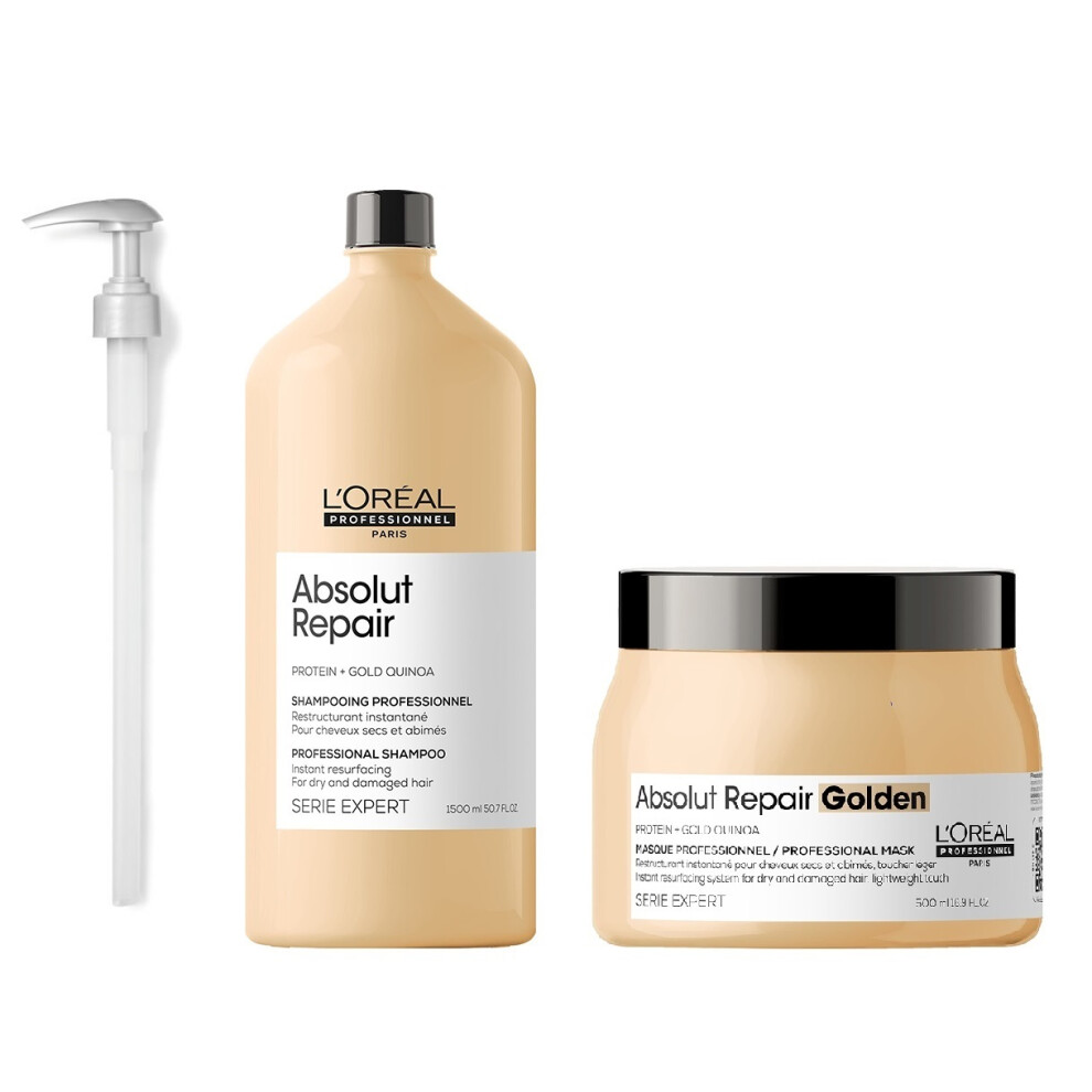 L'Oreal Serie Expert Absolut Repair - Pump - Shampoo 1500ml - Golden Mask 500ml - Repair Oil 90ml