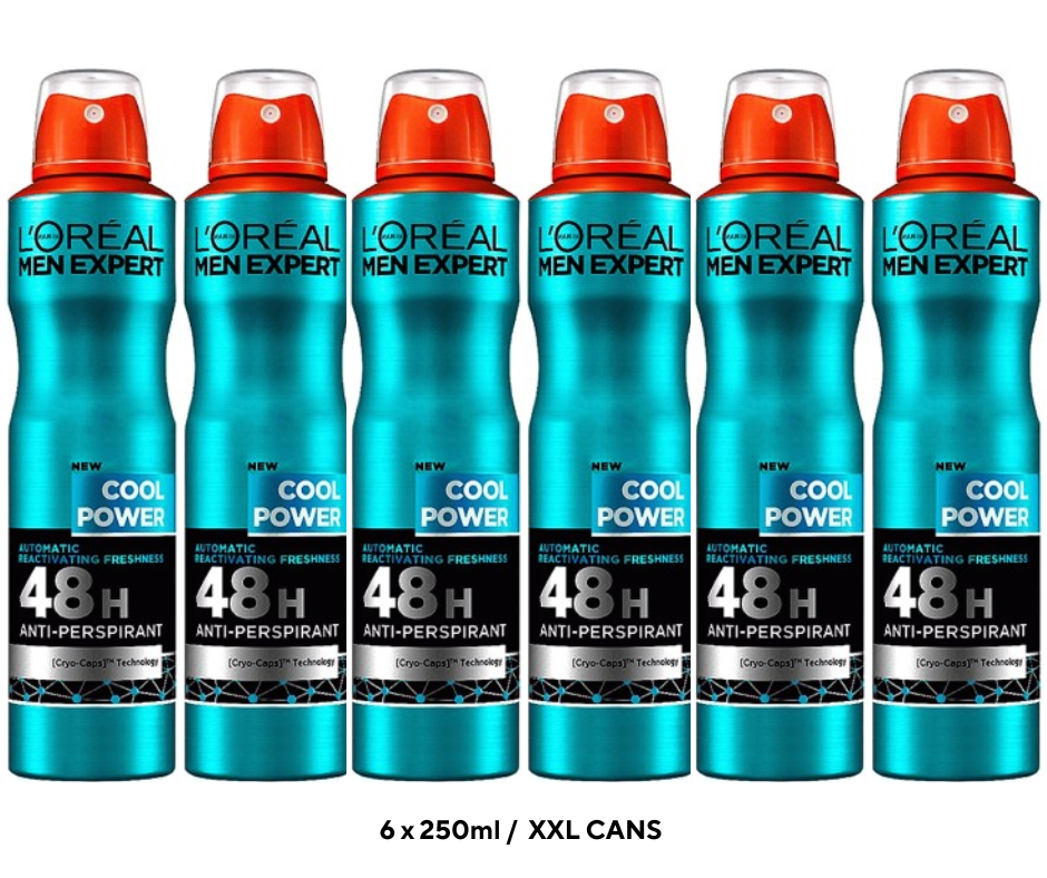 6 x 250ml XXL L'oreal Men Expert COOL POWER Anti-Perspirant Deodorant Spray