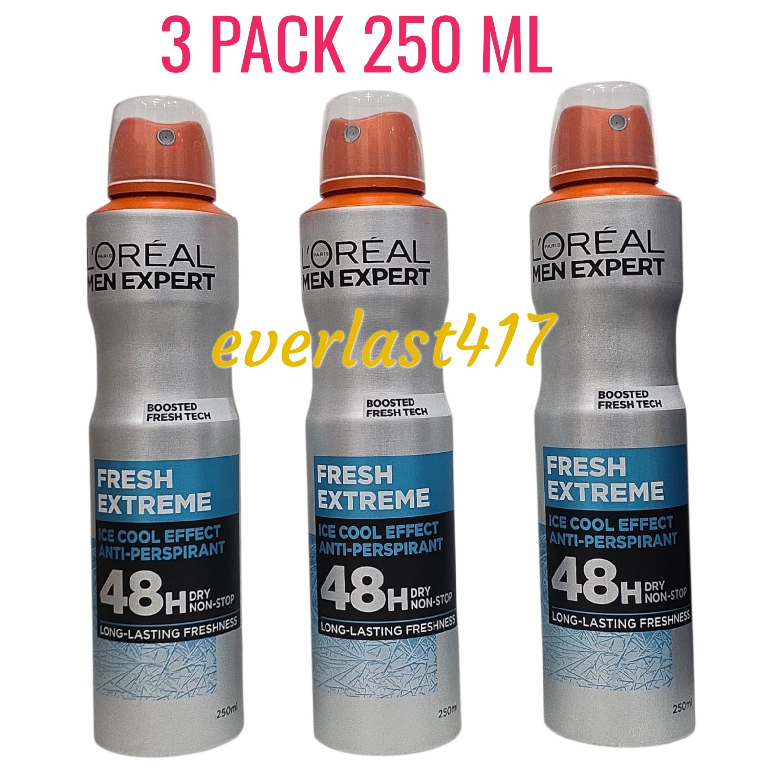 L'OREAL MEN EXPERT FRESH EXTREME ANTI-PERSPIRANT DEODORANT BIG 250ML CAN 3 PACK