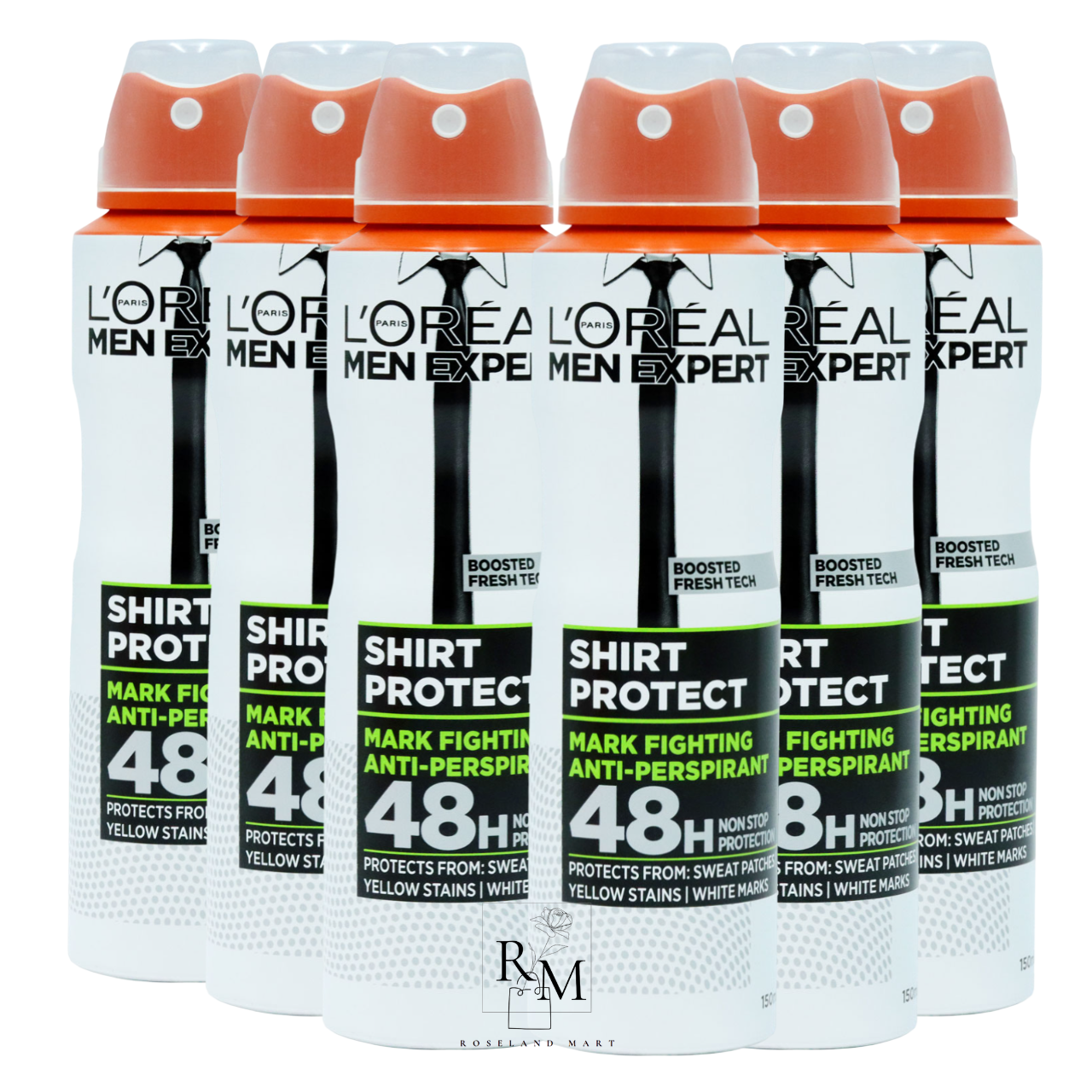 6 x 150ml LOreal Men Expert Anti-Perspirant Deodorant 48H Shirt Protection