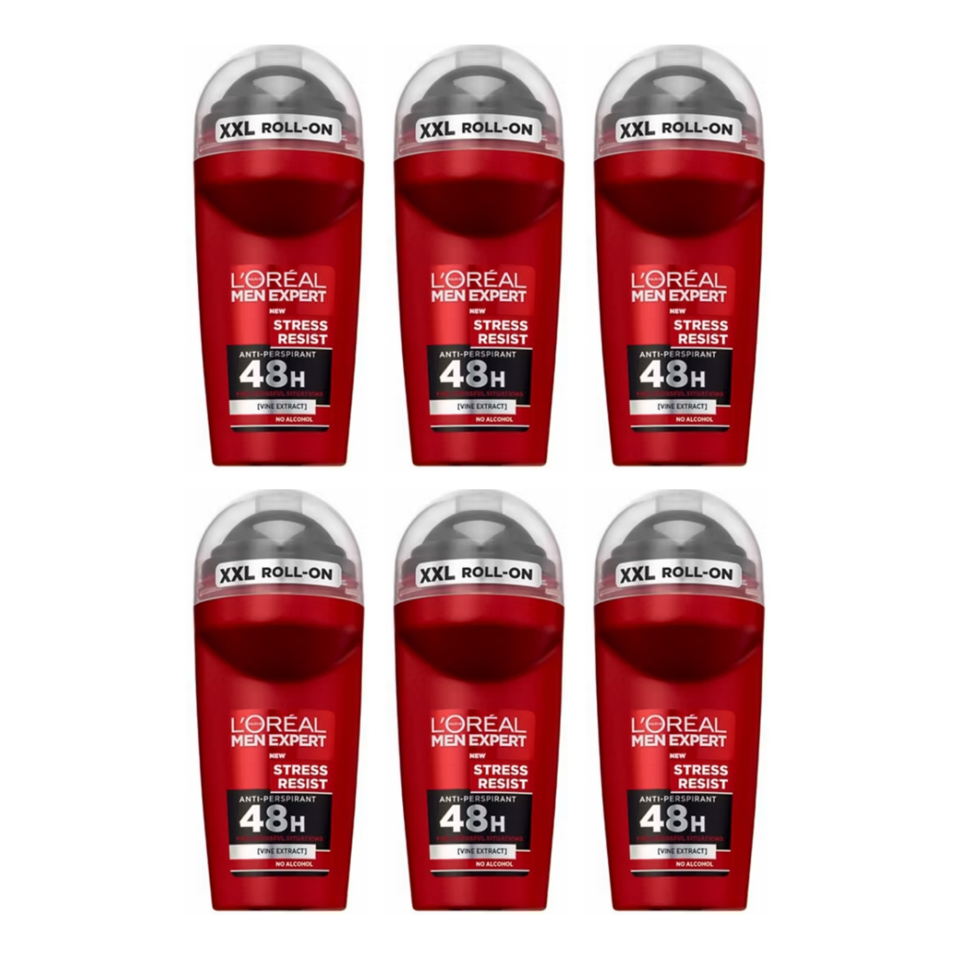 L'Oréal Men Expert Stress Resist Anti-Perspirant Roll-On 50ml - Pack of 6