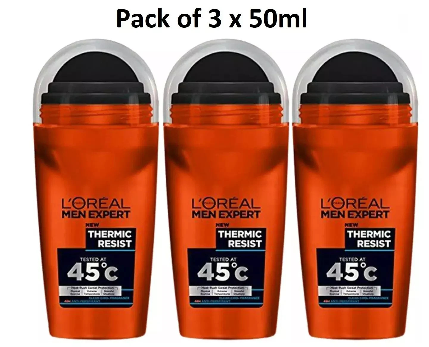 3x L'Oreal Men Expert Thermic Resist 48H Anti-Perspirant Roll On Deodorant 50ml