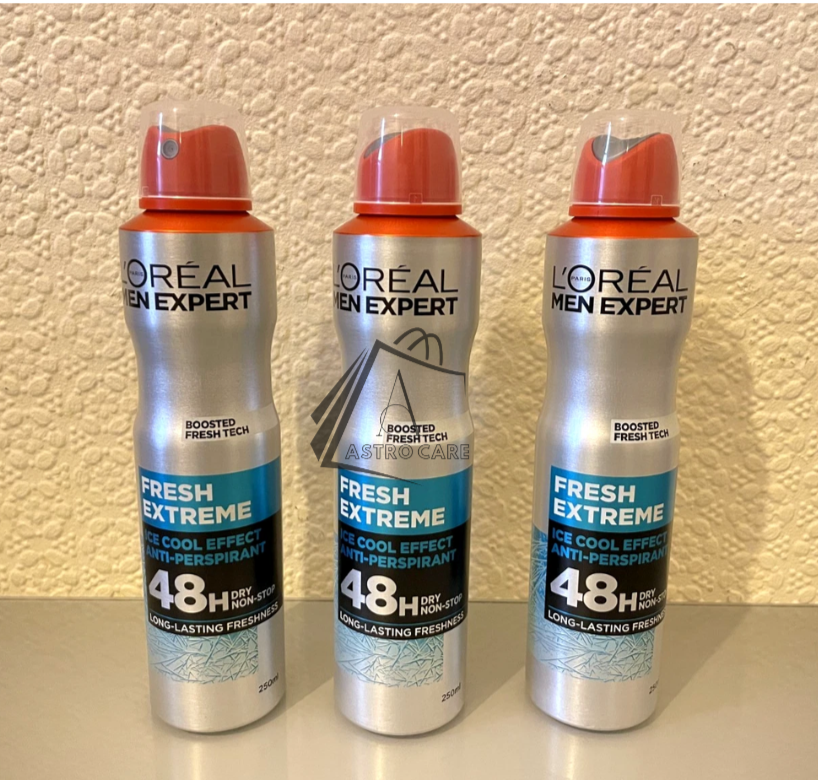 3 x 250ml XL Loreal Anti-Perspirant Deodorant Men Expert Fresh Extreme spray