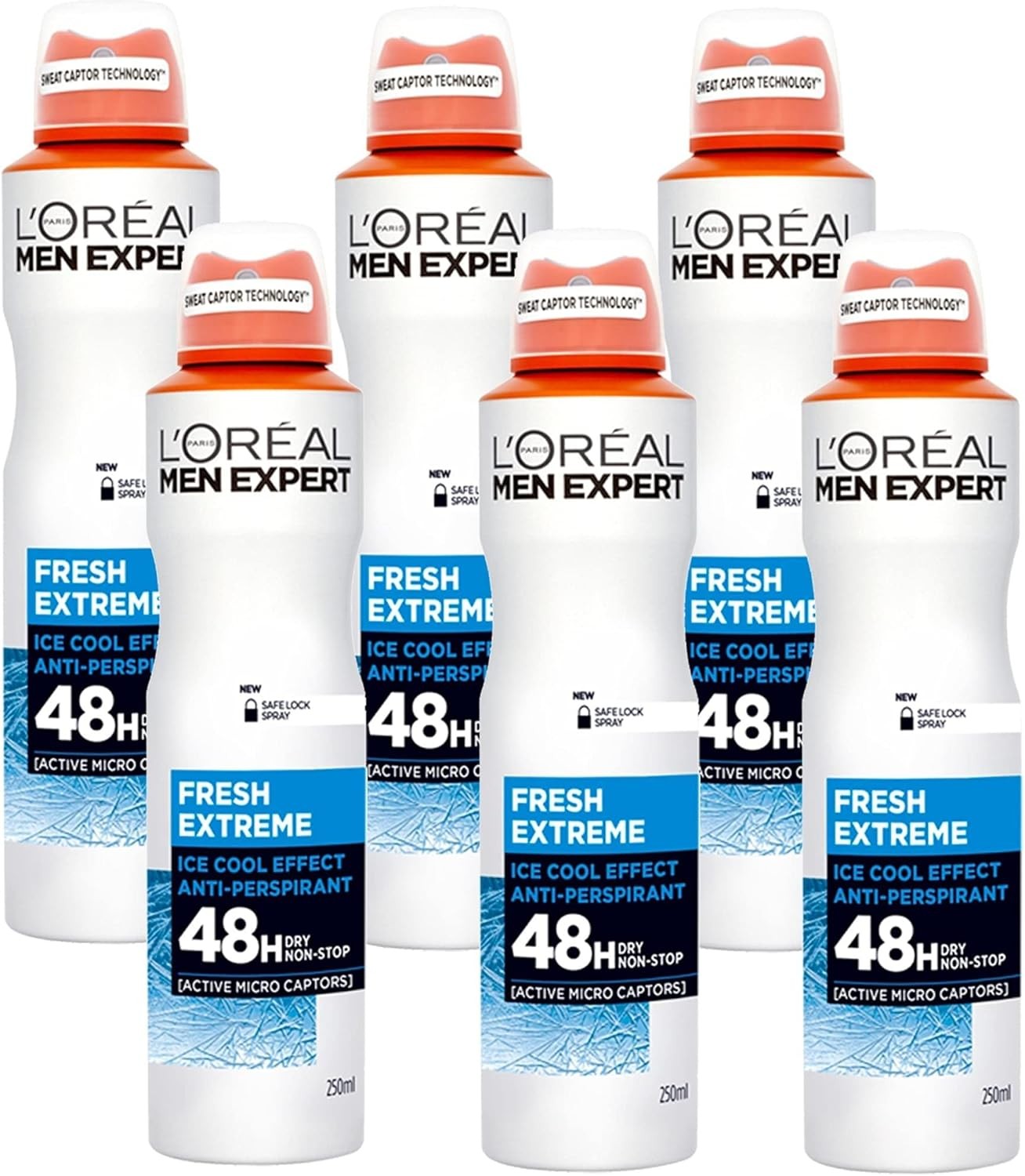 6 x L'Oreal Men Expert Anti-Perspirant Spray Fresh Extreme 250ml