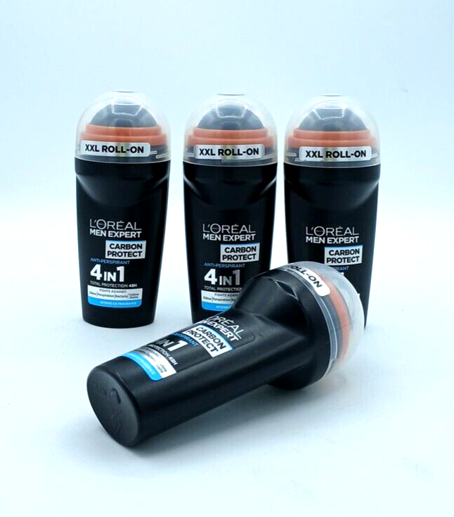4X L'Oreal Men Expert Roll-On Anti-Perspirant Deodorant Carbon Protect 50ml B100
