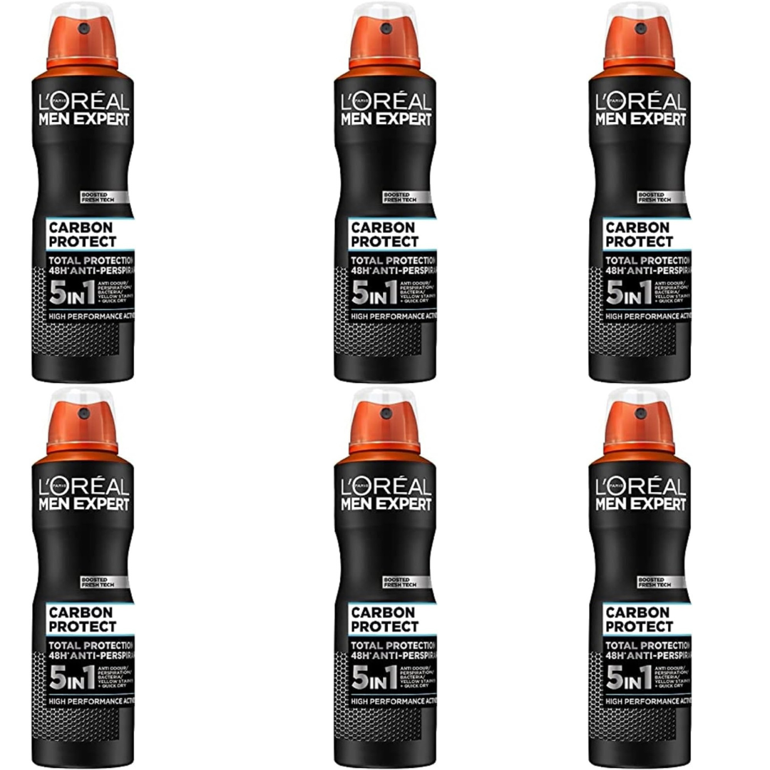 6x 150ml Loreal Men Expert 48h 5in1 Anti-Perspirant Spray Carbon Protect