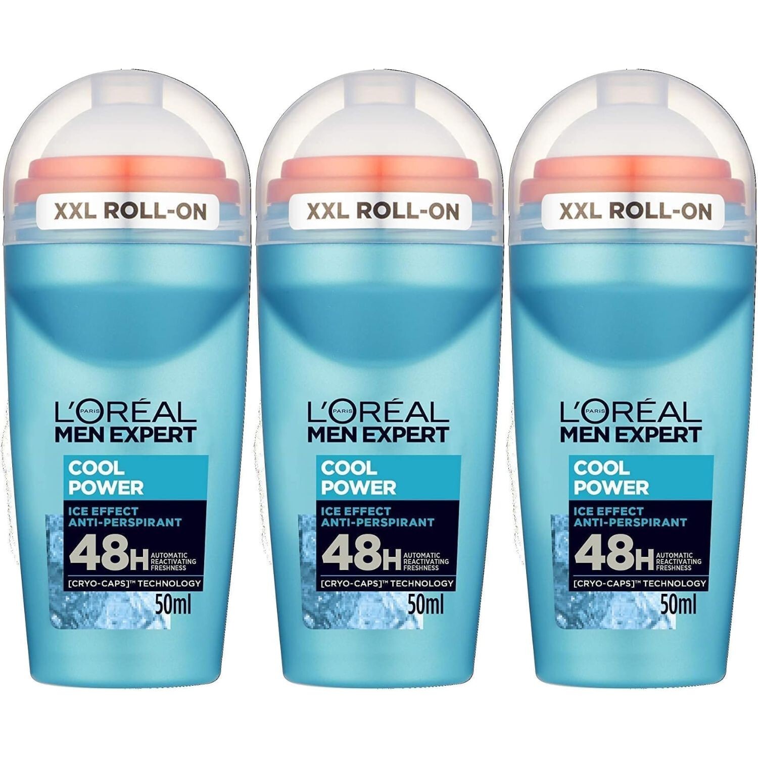 3x LOreal Paris Men Expert Cool Power 48H Anti-Perspirant Roll-On Deodorant 50ml