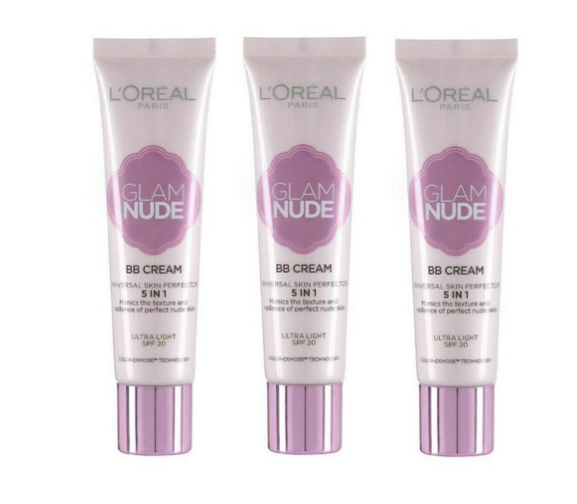 3 x L'OREAL GLAM NUDE BB CREAM 5 in 1 SKIN PERFECTOR - ULTRA LIGHT SPF 20