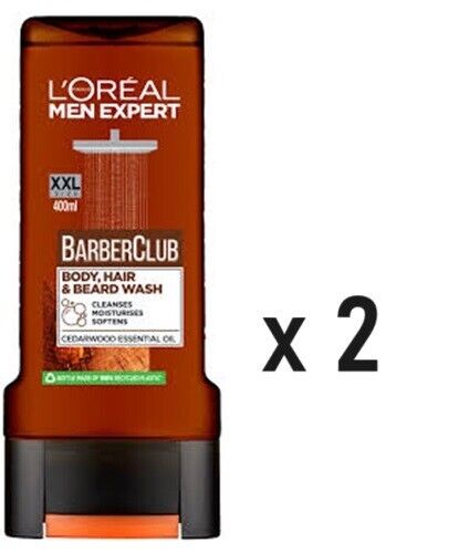 2 x Loreal Men Expert BARBER CLUB Body, Hair & Beard Wash BIG XXL SIZE 400ml ea