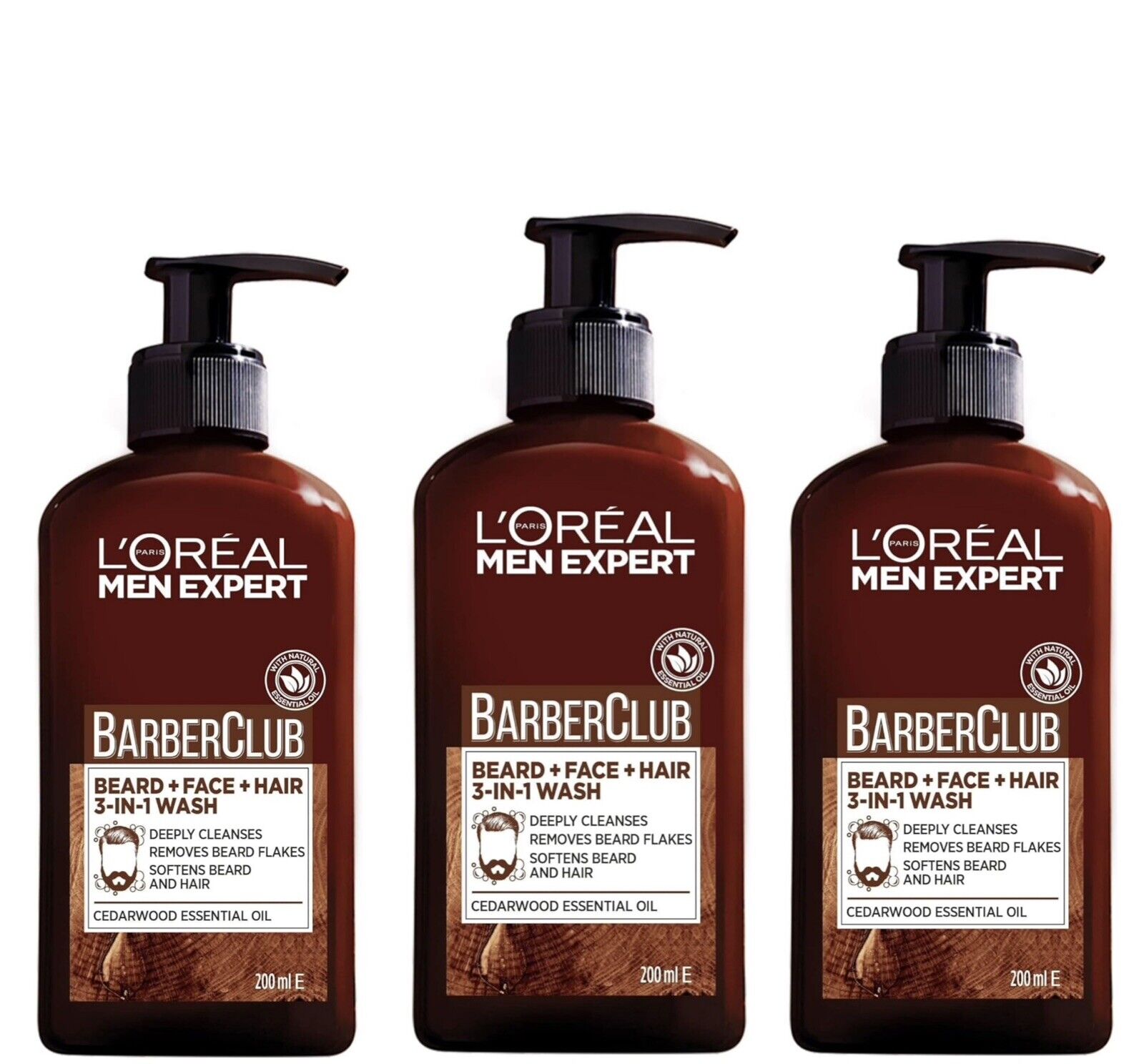 3x L'Oréal Men Expert Barber Club Beard Face Hair Wash 200ml – Total Care
