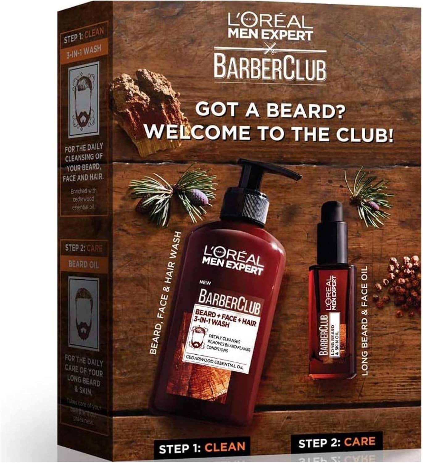 L’Oréal Men Expert Barber Club Grooming Kit | 3-in-1 Beard, Hair & Face Wash