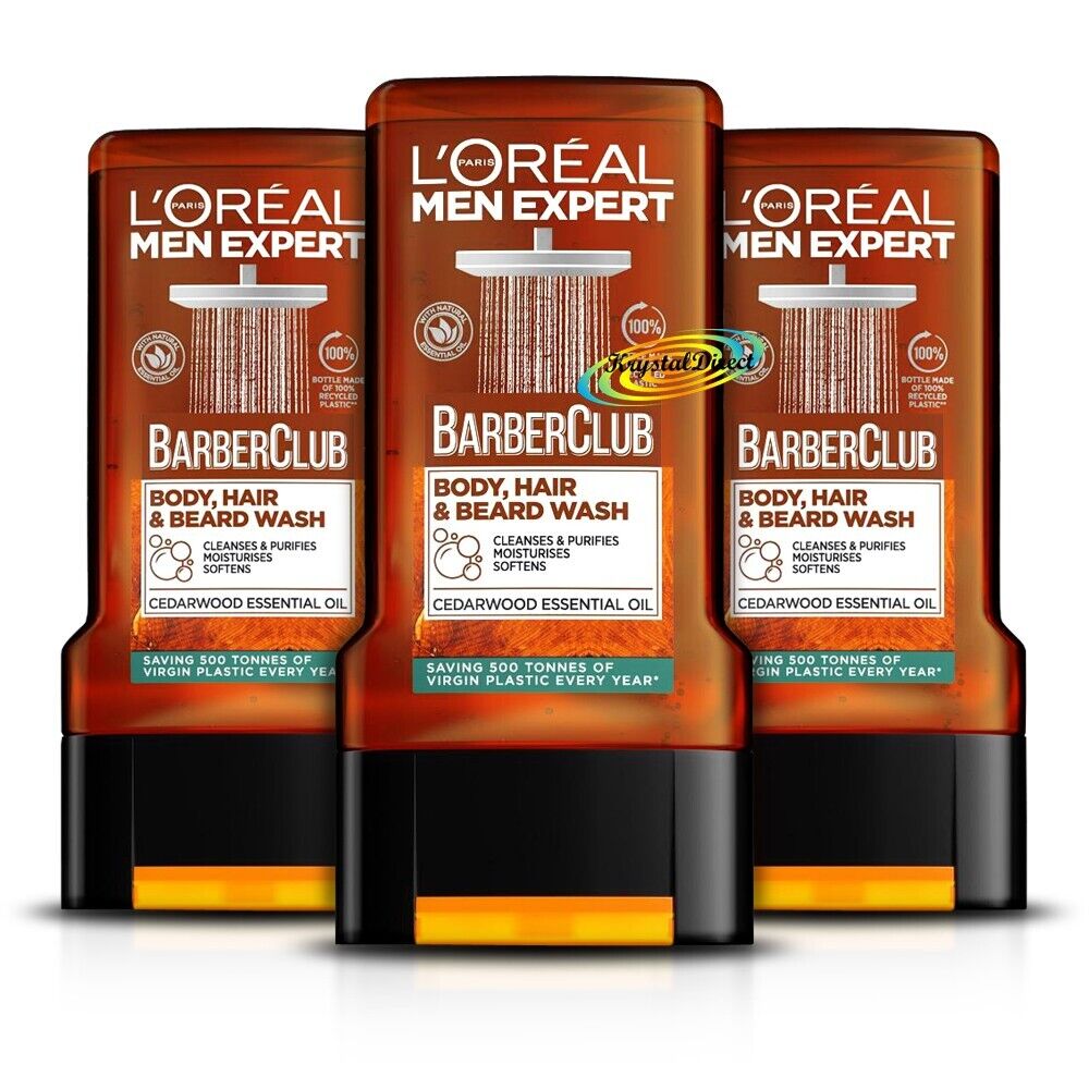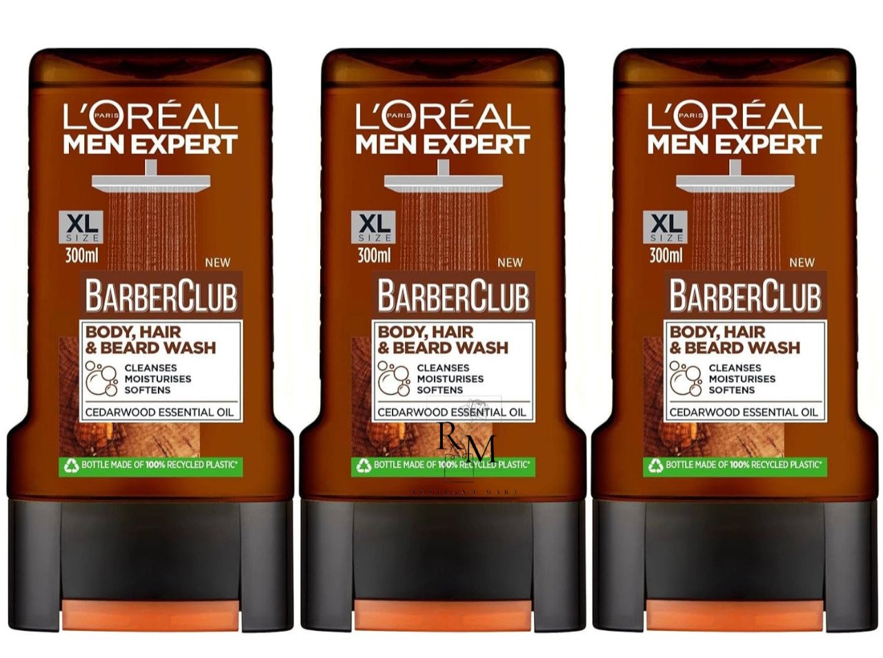 3 x 300ml XL Loreal Men Expert Body,Hair & Beard Wash Barber Club FREE POST