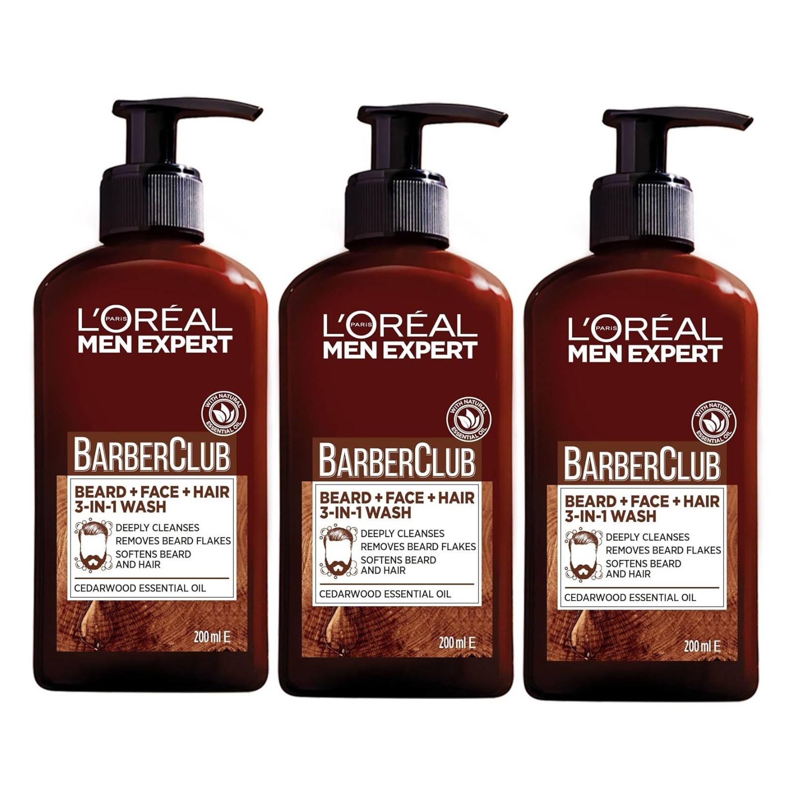 3x Loreal Men Expert Barber Club Beard Face & Hair Wash 3x200ml Pack