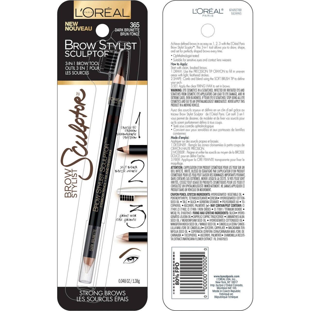 L'Oreal Brow Sculptor 3 in 1 Brow Tool. Draw, Shape & Set. #365 DARK BRUNETTE