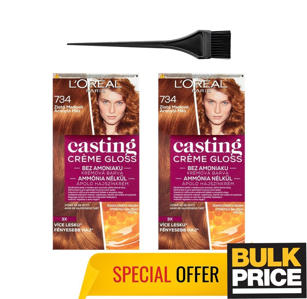 L'Oreal Casting Creme Gloss 734 Golden Honey Ammonia Free Hair Color Bulk 2-Pack