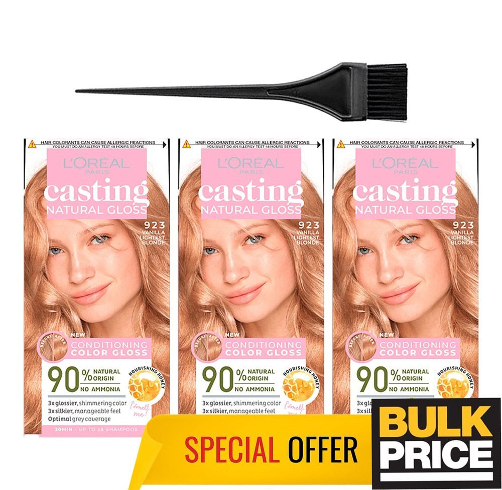 L'Oreal Casting Natural Gloss 923 Vanilla Lightest Blonde Hair Color Bulk 3-Pack