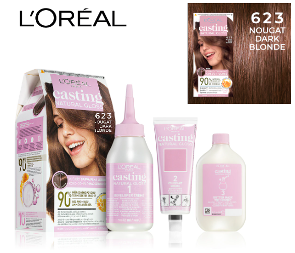 2X L'Oreal Casting Natural Gloss Semi Perm Hair Dye 623 Nougat ( Brown)