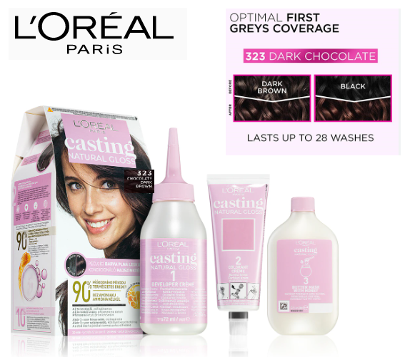 L'Oreal Casting Natural Gloss Permanent Hair Dye Chocolate Dark Brown 323