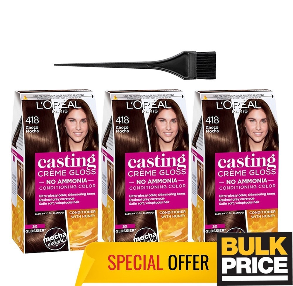 L'Oreal Casting Creme Gloss 418 Choco Mocha Hair Color 3-Pack Ammonia Free