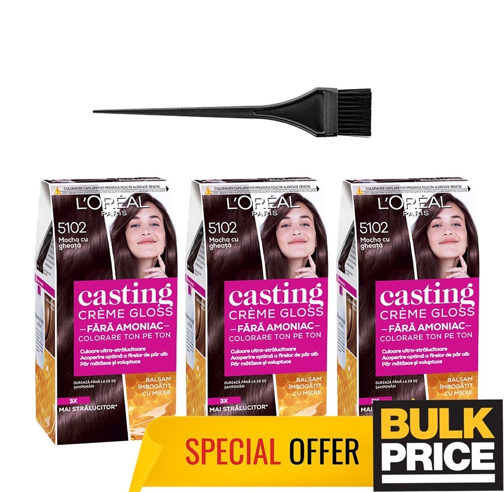 L'Oreal Casting 5102 Iced Mocha Glossy Salon Quality Results Hair Color 3-Pack