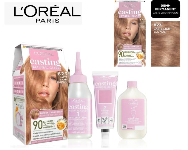 2x L'Oréal Paris, Casting Gloss Semi-Permanent Hair Dye, 823 Latte Light Blonde