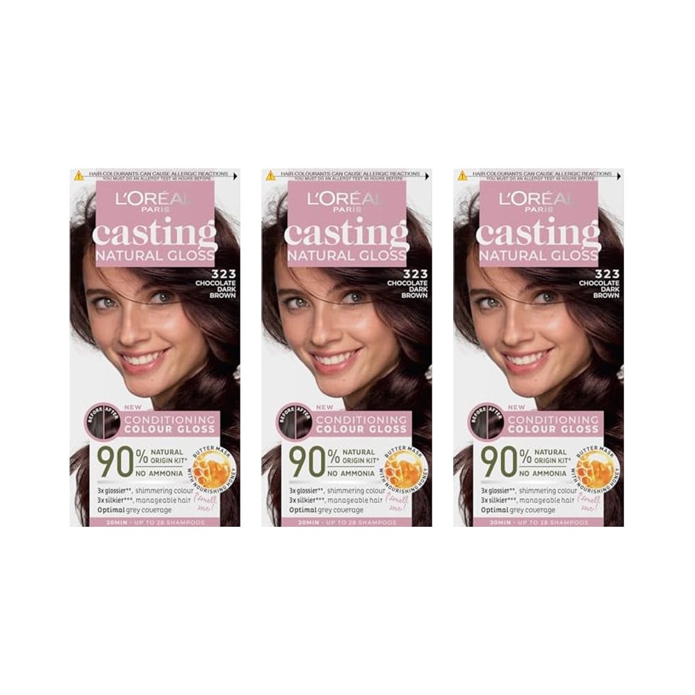 L'Oreal Casting Natural Gloss Permanent Hair Dye Chocolate Dark Brown 323 x 3