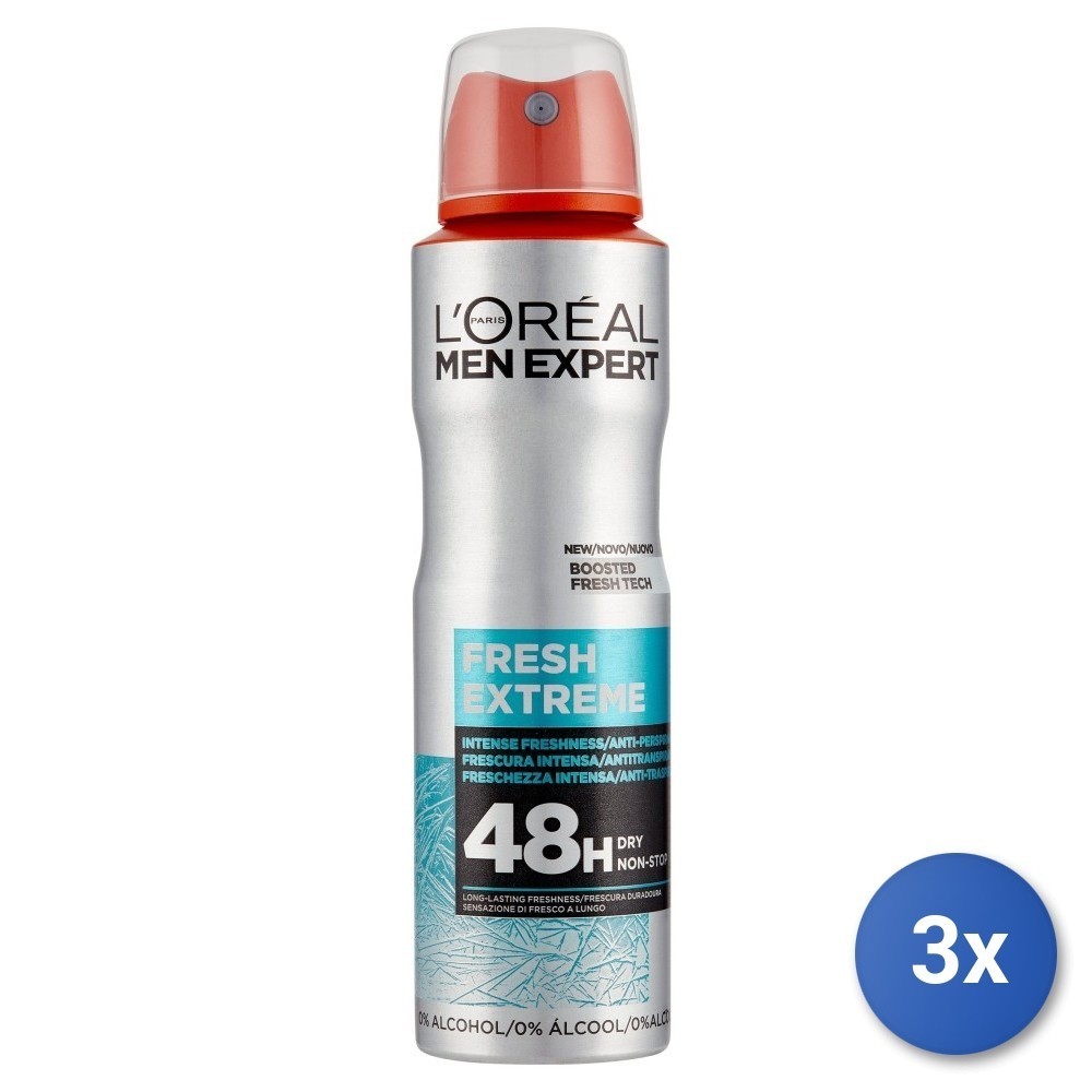 3X L'Oreal Deodorant Spray 150 ML. Man Fresh Extreme