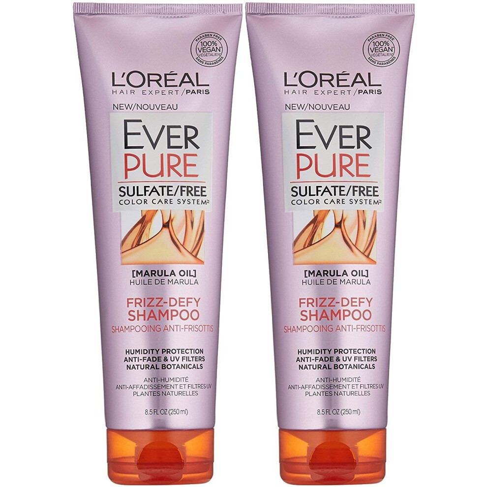 LOr?al Paris Hair Care EverPure Sulfate Free Frizz Defy Shampoo with Marula Oil 2 Count (8.5 Fl; Oz each) (Packaging May Vary)