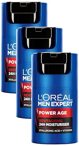 NEW L'Oréal Men Expert Power Age Moisturiser, Hydrating & Revitalising Hyaluronic Acid Moisturiser for Men, designed for Ageing, Dry & Dull Skin 50ml (Pack of 3)