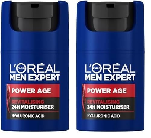 NEW L'Oréal Men Expert Power Age Moisturiser, Hydrating & Revitalising Hyaluronic Acid Moisturiser for Men, designed for Ageing, Dry & Dull Skin 50ml (Pack of 2)