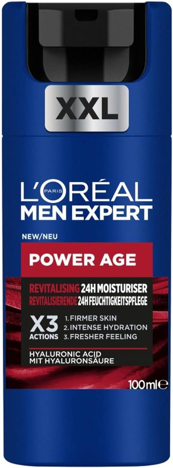 L'Oréal Men Expert Power Age Hyaluronic Acid Moisturiser XXL, Empower Your Skin to Age Better, Hydrates, Firms, Protects, and Smooths, Fights Early Aging, Apply Daily for Revitalised Skin, 100ml