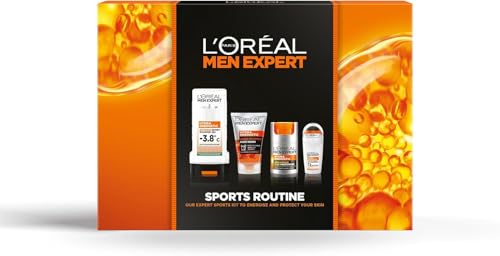 L'Oréal Men Expert Sports Routine Gift Set for Him, Energising Face & Body Skincare Routine, Gift Set For Men, Sport Shower Gel, Daily Face Wash, SPF 15 Moisturiser & Anti Odor Roll-On