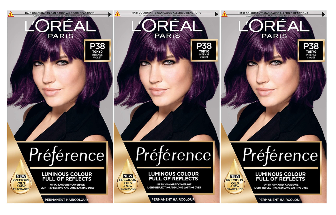 3 L'OREAL PREFERENCE HAIR DYE COLOUR 100% GREY COVERAGE TOKYO INTENSE VIOLET P38