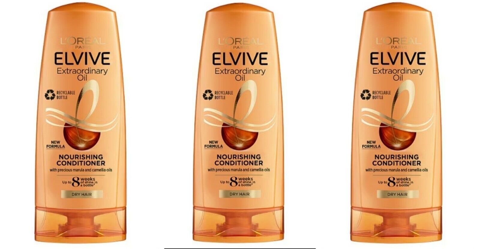 3 X Loreal Elvive Extraordinary Oil Nourishing Conditioner Dry Hair 200ml