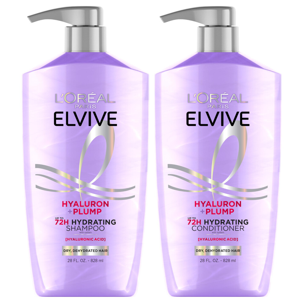 L'Oreal Paris Elvive Hyaluron Plump Shampoo and Conditioner Set for Dehydrated Dry Hair with Hyaluronic Acid Care Complex 1 Kit (2 Products)