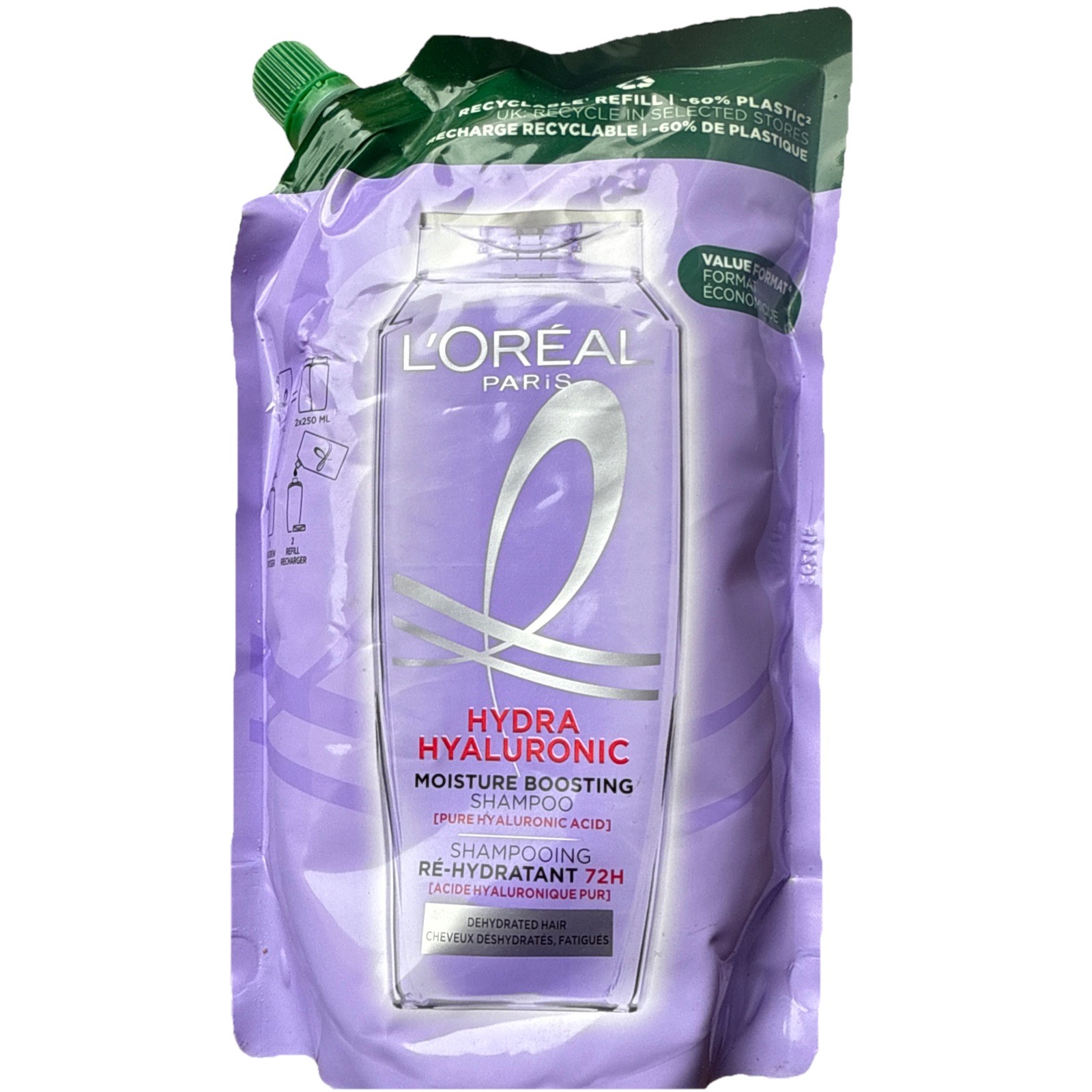 LOreal Paris Elvive Hydra Hyaluronic Shampoo Refill Pouch 500ml