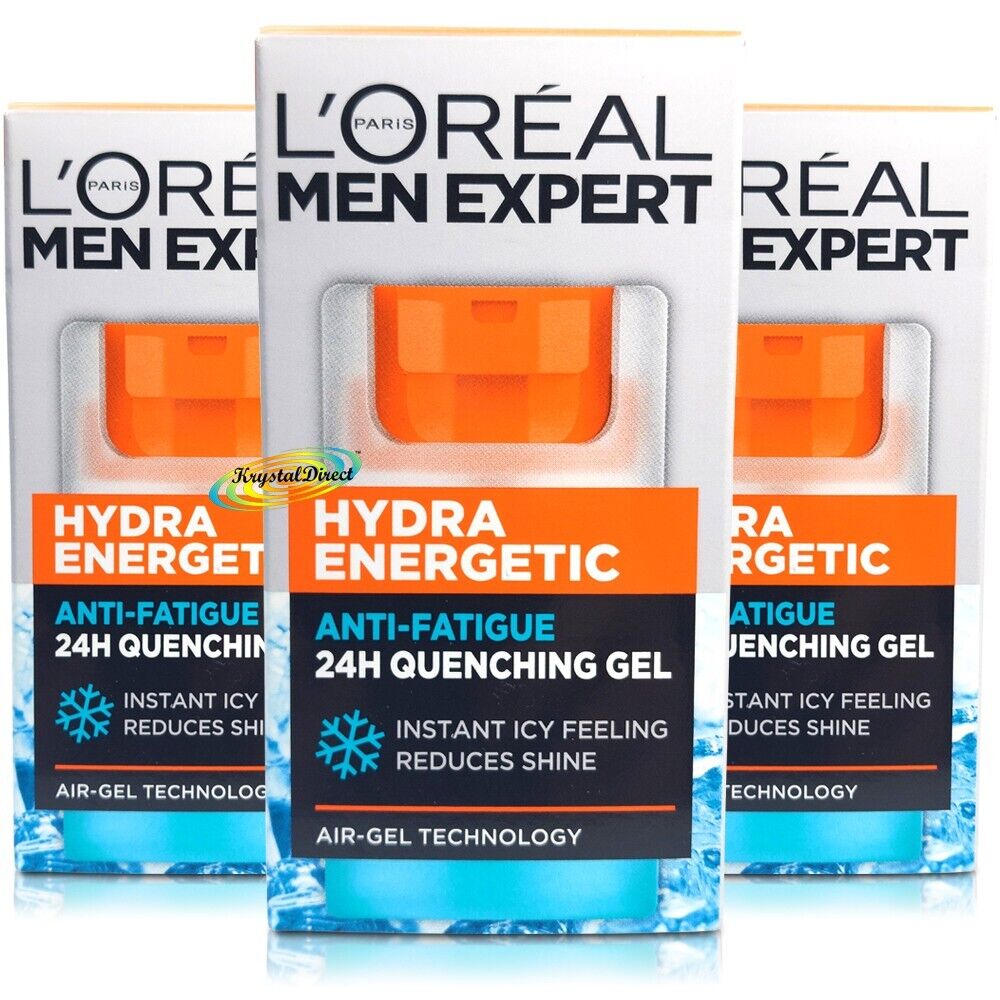 3x Loreal Men Expert HYDRA ENERGETIC Anti Fatigue Quenching Face Gel 50ml