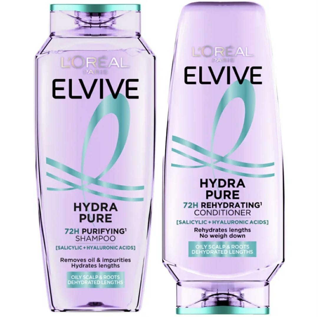 TWIN Pk L'Oreal Elvive HYDRA PURE 72H Purifying Shampoo 400ml & Conditioner 300m