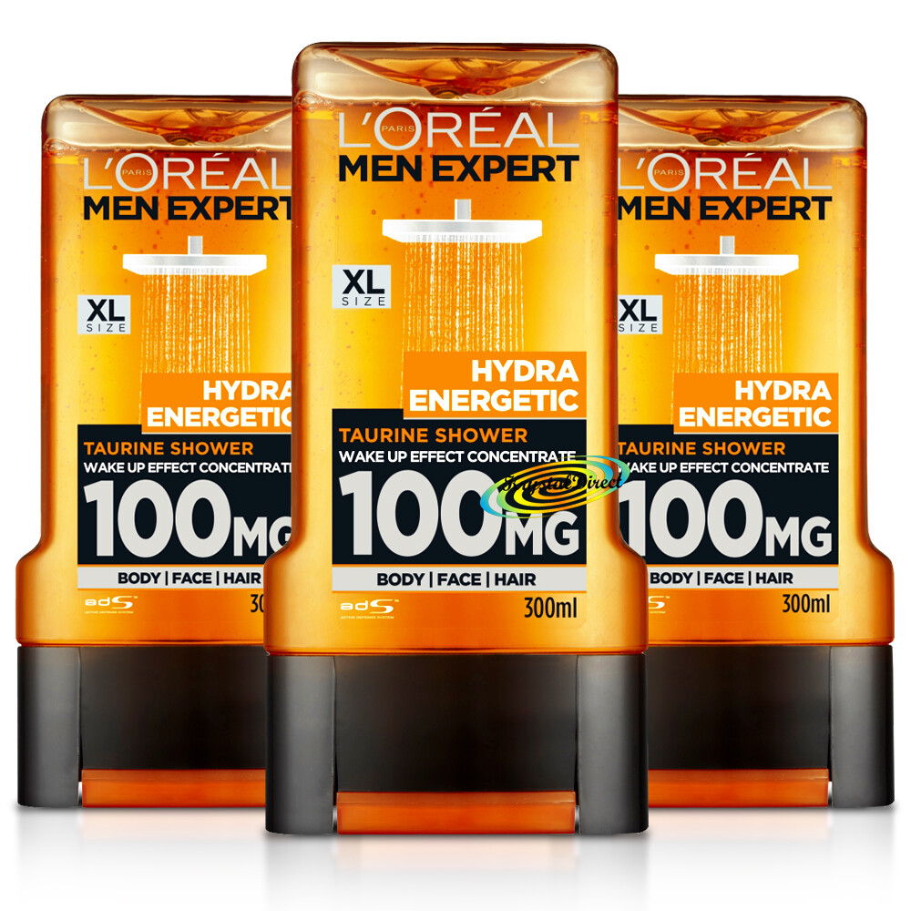 3x Loreal Men Expert Hydra Energetic Taurine Shower Gel 300ml
