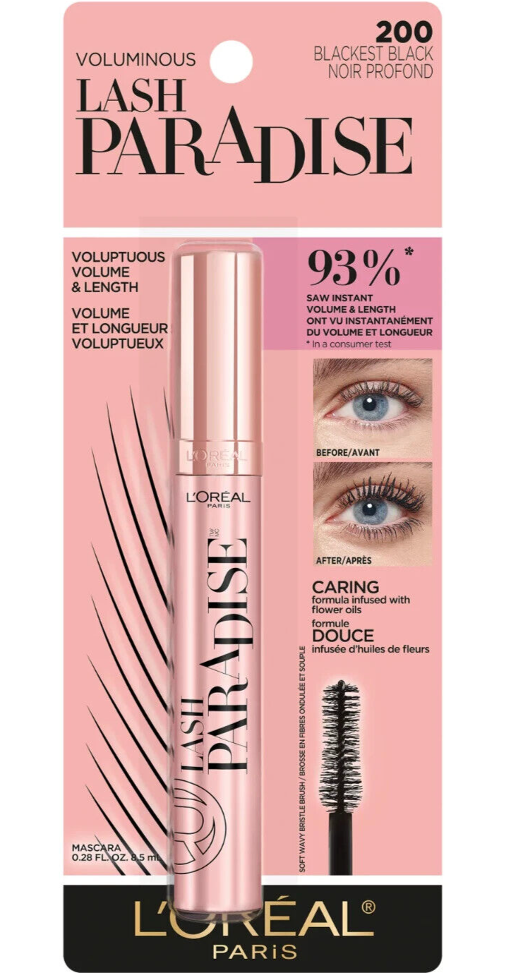 L'Oreal Paris Makeup Lash Paradise Mascara Voluptuous Volume Intense Length Feathery Soft Full Lashes No Flaking No Smudging No Clumping B